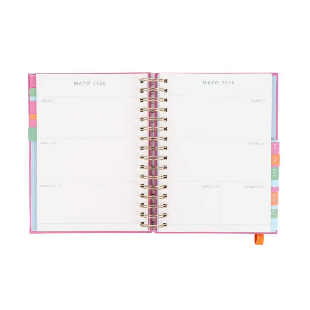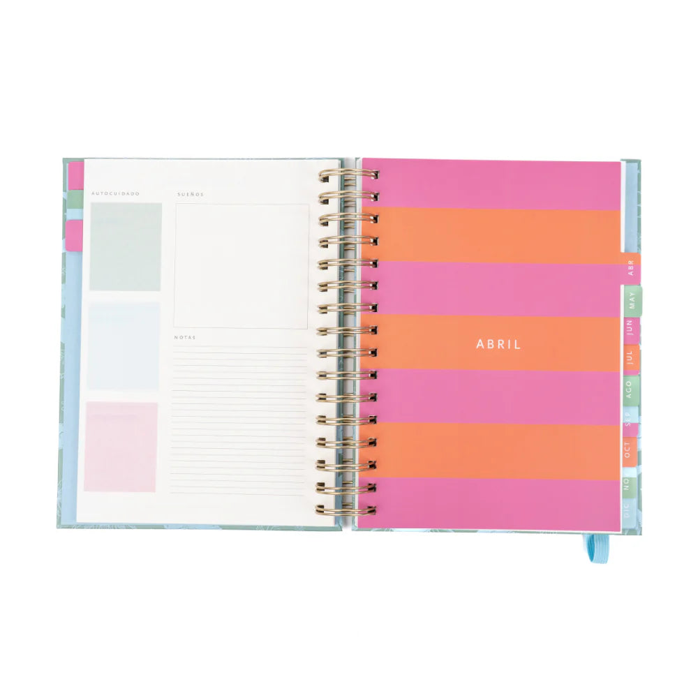 Organiza tu año con estilo y practicidad gracias a la Agenda 2026 Anillada Mediana Vista Semanal de 12 Meses. Su tamaño mediano y encuadernación anillada facilitan anotar tus compromisos y llevarla a cualquier lugar. El diseño tropical aporta un toque fresco y vibrante que hará que cada día sea más inspirador.