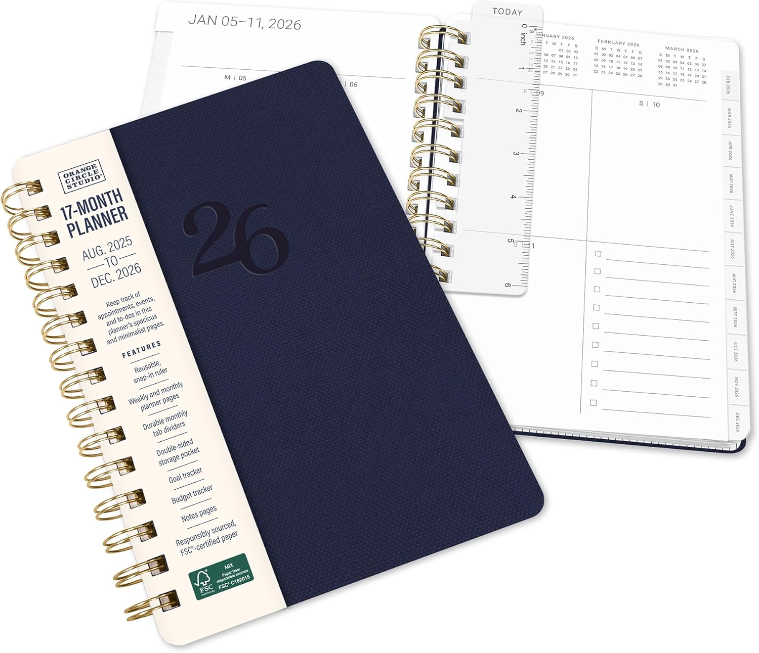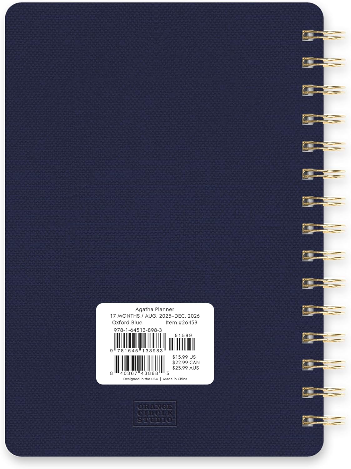 Planifica con estilo y eficiencia con la Agatha Planner 2025-2026 de Orange Circle Studio, una agenda que combina diseño moderno con funcionalidad. Cubre 17 meses, desde agosto de 2025 hasta diciembre de 2026, ofreciéndote una herramienta completa para mantener tus metas, citas y tareas siempre bajo control.