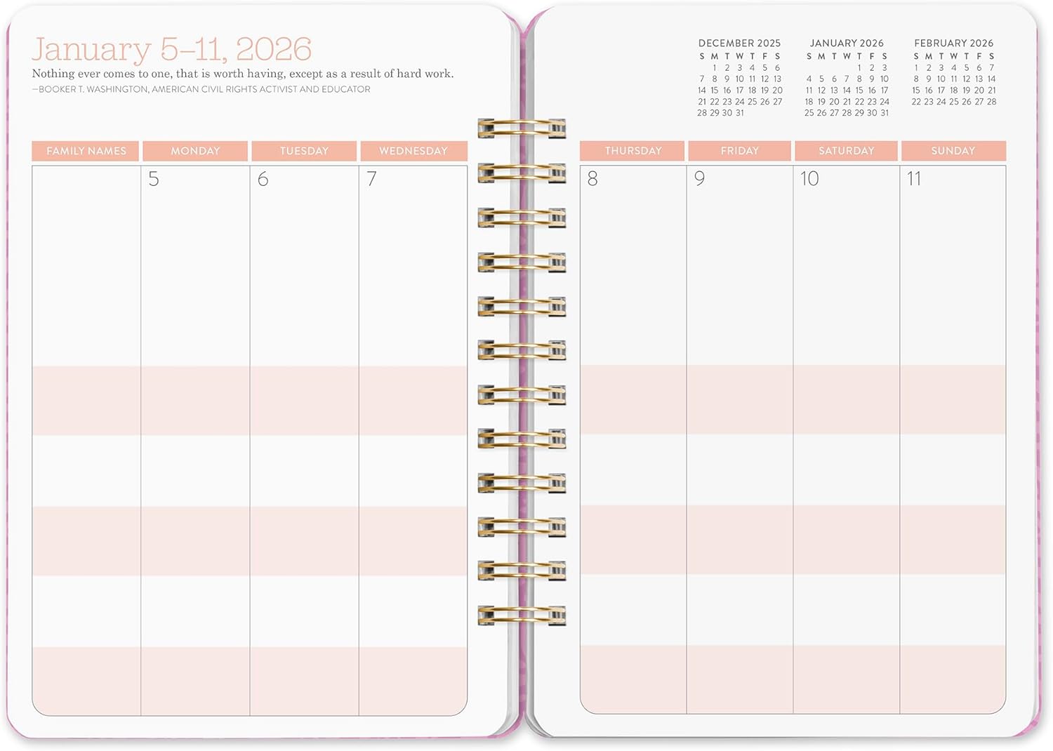 Abarca 17 meses: Esta agenda cubre desde agosto de 2025 hasta diciembre de 2026, ofreciendo vistas mensuales y semanales para ayudarte a mantener el control de tus actividades durante todo el año. Ideal para organizar citas, eventos y planes familiares.
