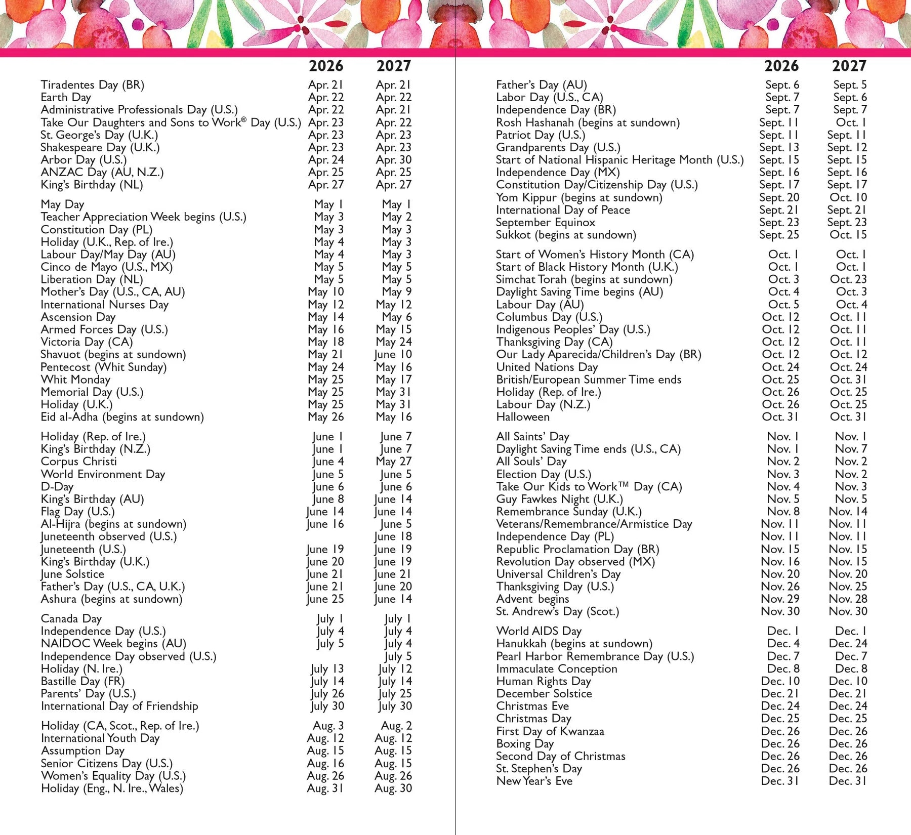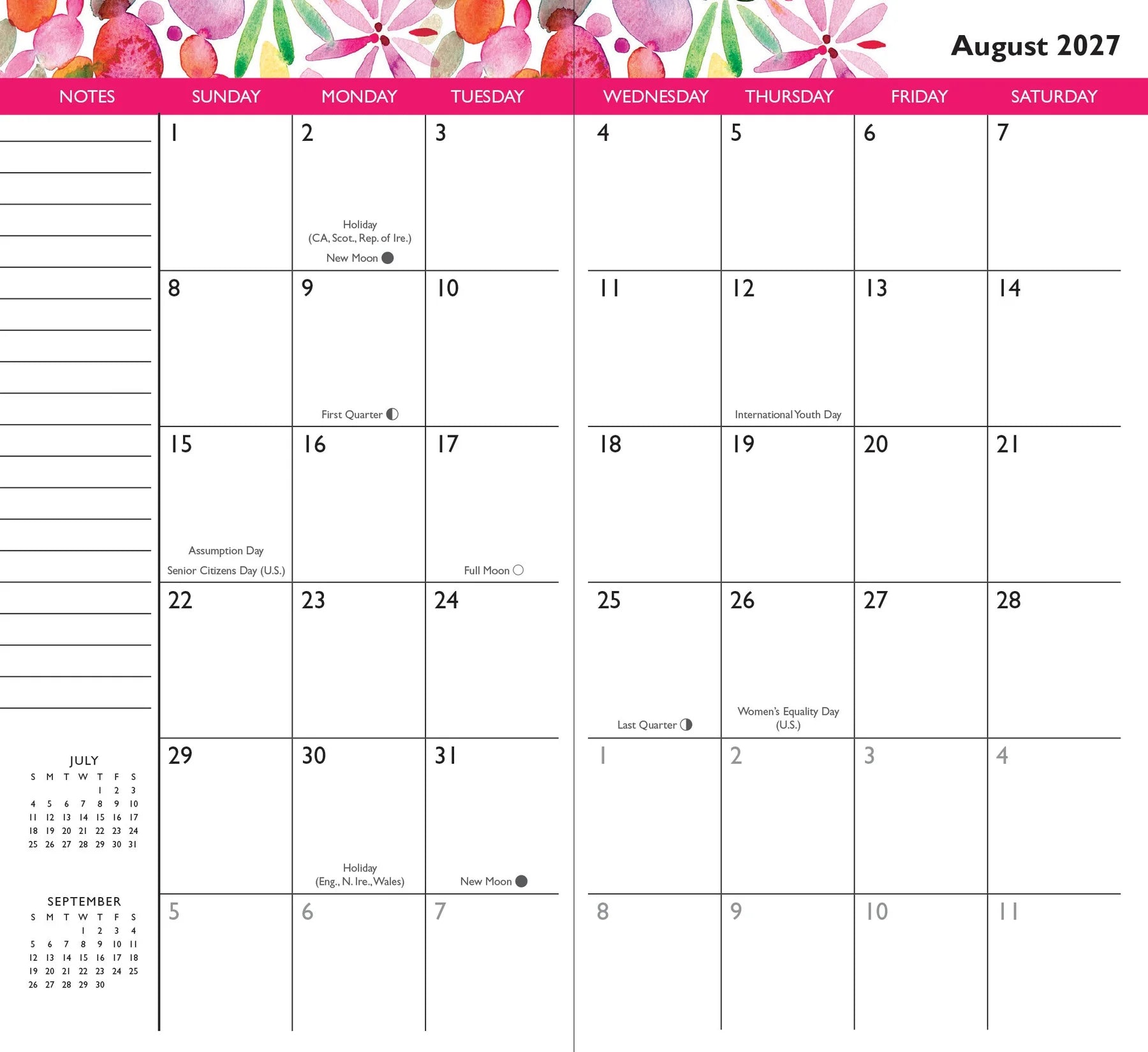 Planner mensual de bolsillo Peter Pauper Press – Watercolor Florals 2026-2027