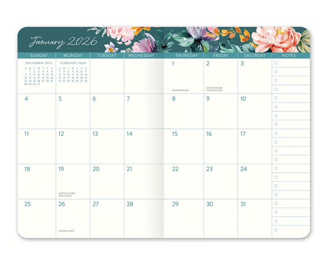 Compacta, funcional y elegante, la Bella Flora Compact Monthly Planner 2026 es perfecta para quienes desean mantener sus metas, citas y fechas importantes organizadas con estilo. Ideal como regalo o para uso personal, te ayudará a vivir un año planificado e inspirador.