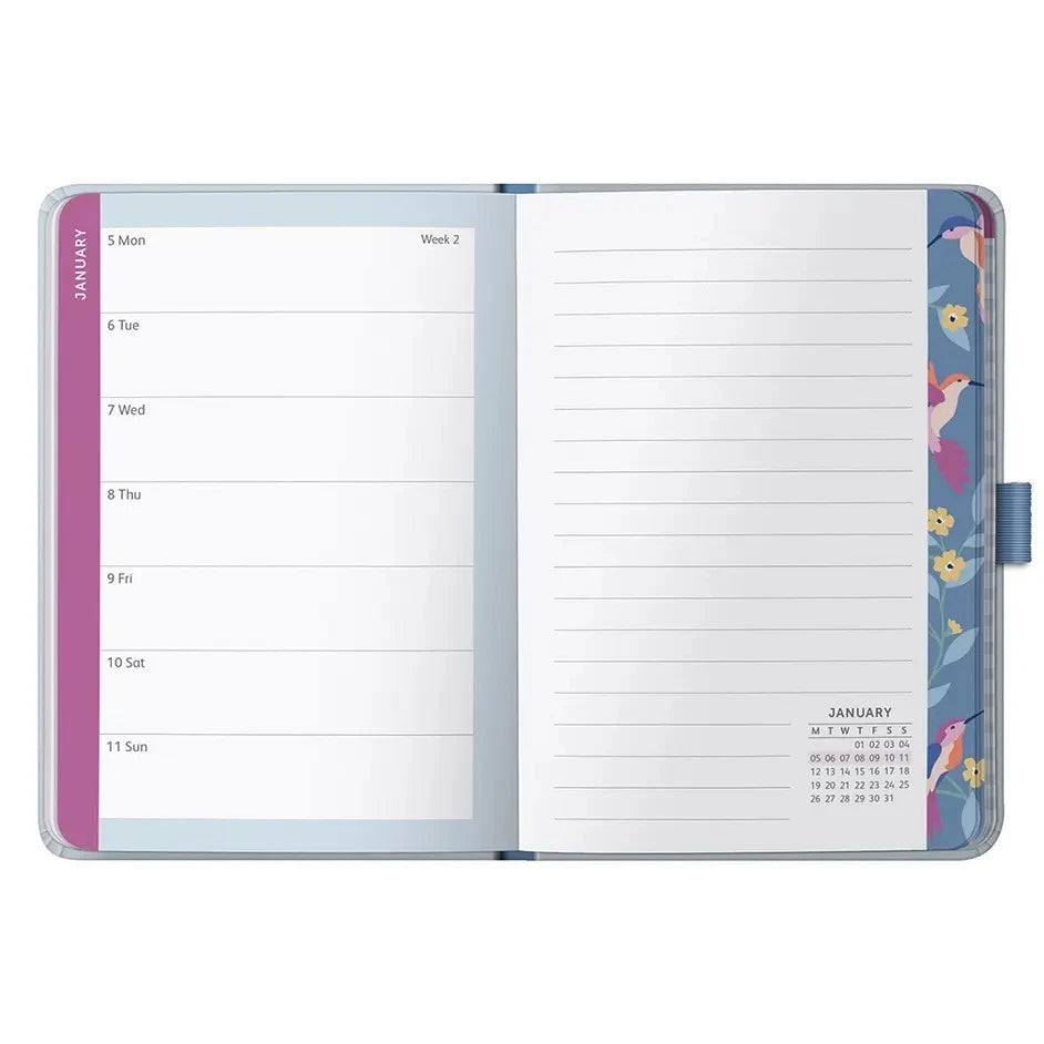 Un planificador compacto y práctico para mantener tus semanas bajo control. Su diseño A6 combina una vista semanal al lado de una página de notas, ideal para organizar tus tareas y pendientes del día a día.