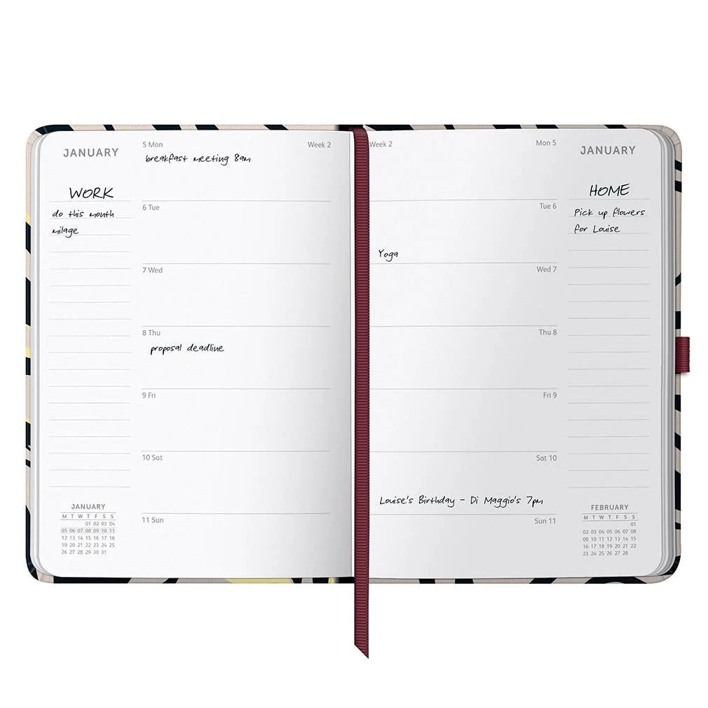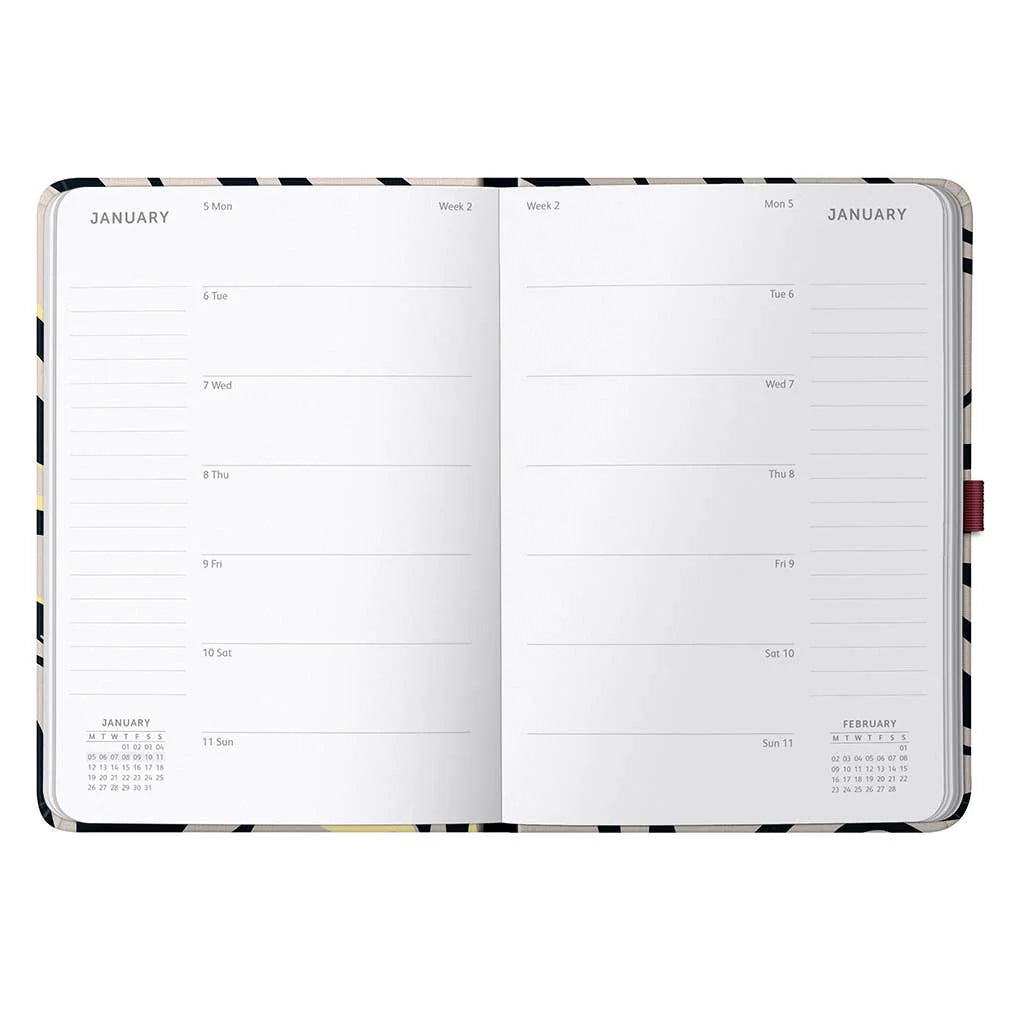 En formato A5, ideal para llevar en la cartera o usar en el escritorio, cubre el periodo de enero a diciembre 2026. Su cubierta textil premium combina elegancia, resistencia y practicidad para el uso diario.