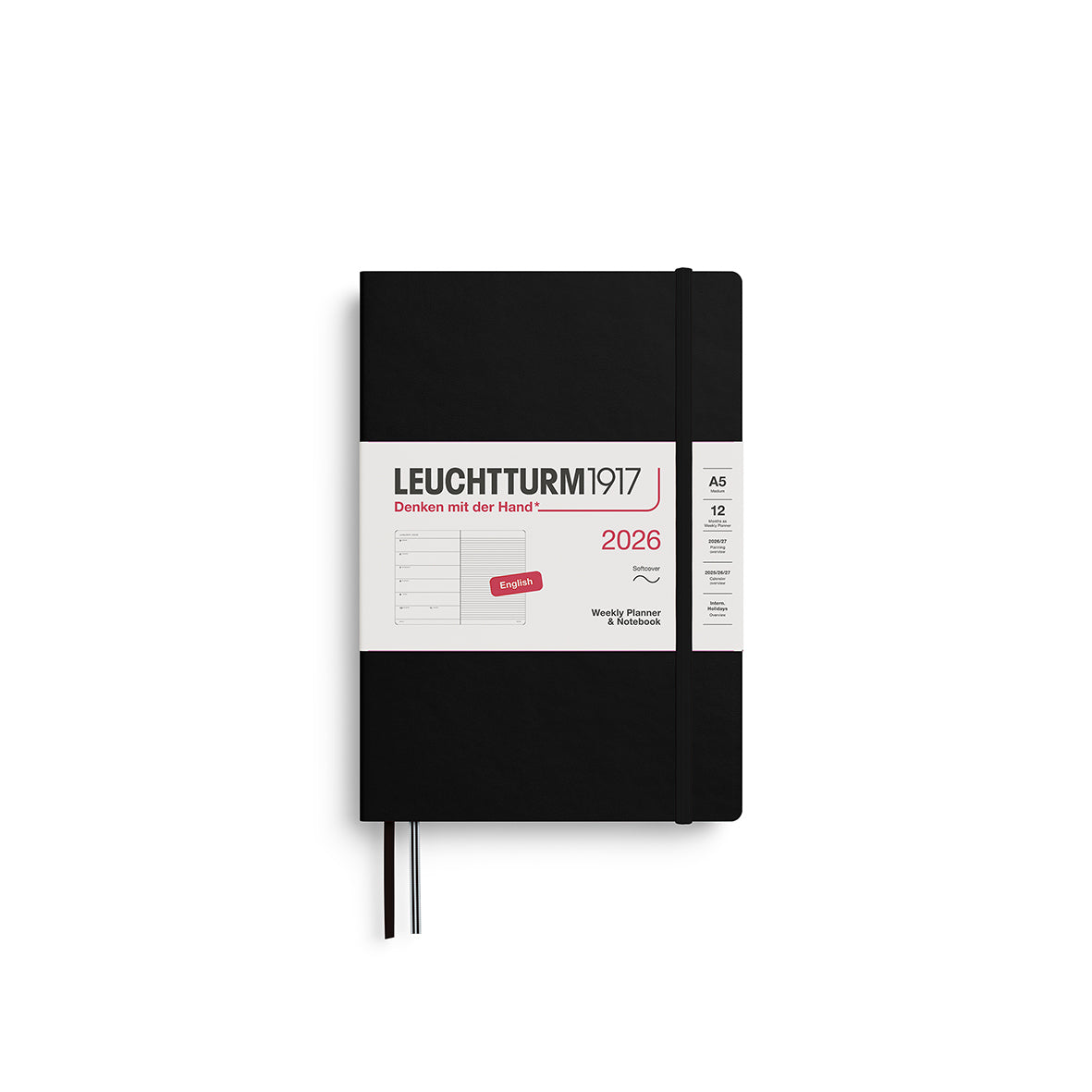La combinación perfecta: un planner para citas y un cuaderno para ideas y pensamientos. Cada doble página presenta la semana completa a la izquierda y una página rayada para notas a la derecha. Disponible en robusta tapa dura o flexible tapa blanda.
