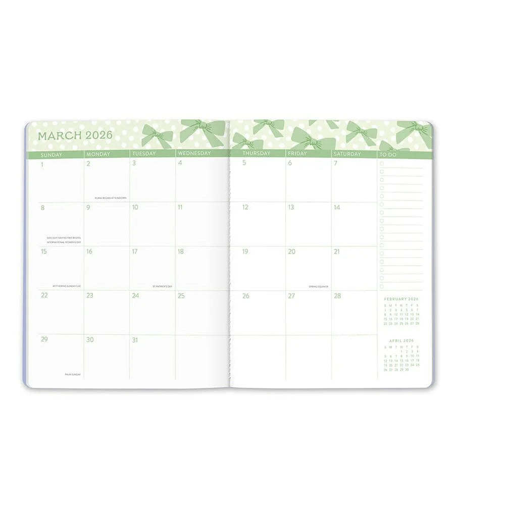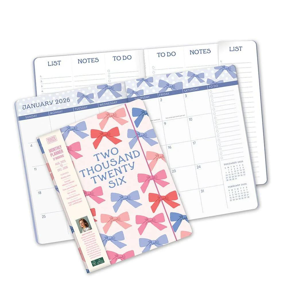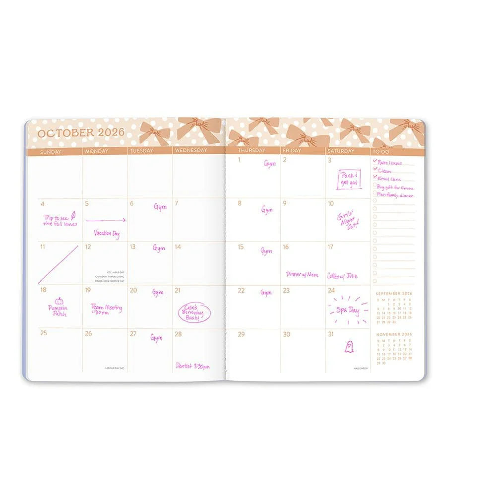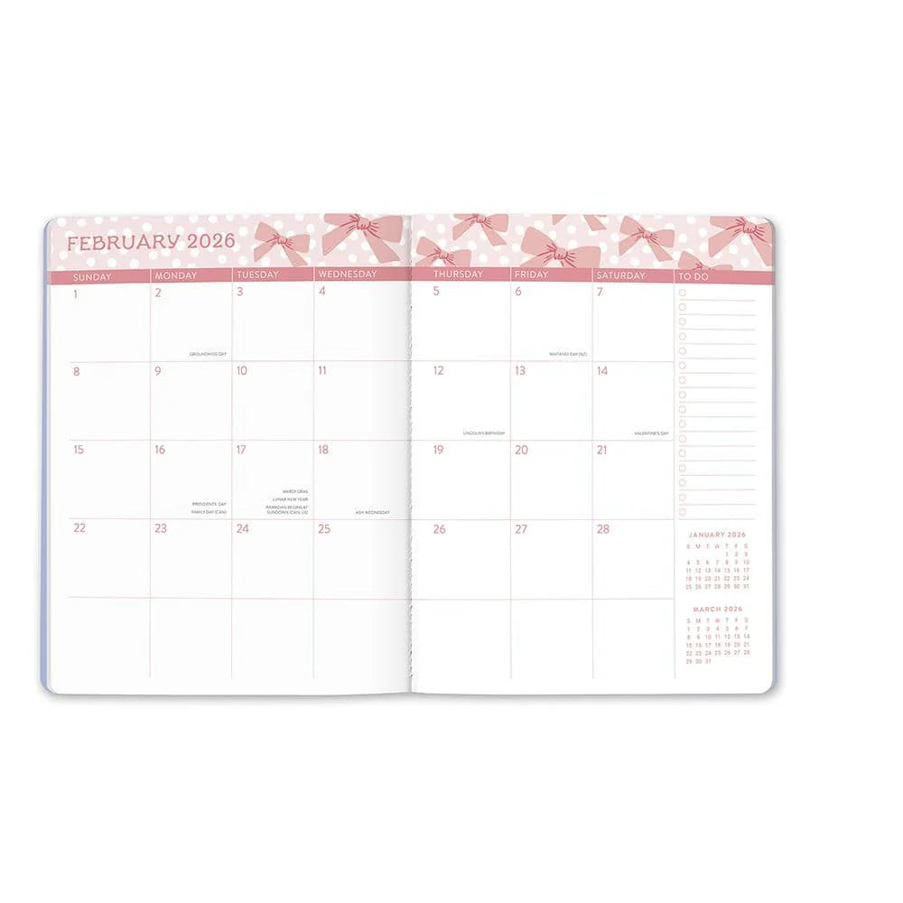 La Agenda 2026 Sweet Bows Mensual te ofrece 17 meses de organización con un diseño encantador y delicado. Su formato mensual facilita la planificación de tus compromisos y metas, mientras que sus detalles de lazos aportan un toque dulce y femenino.