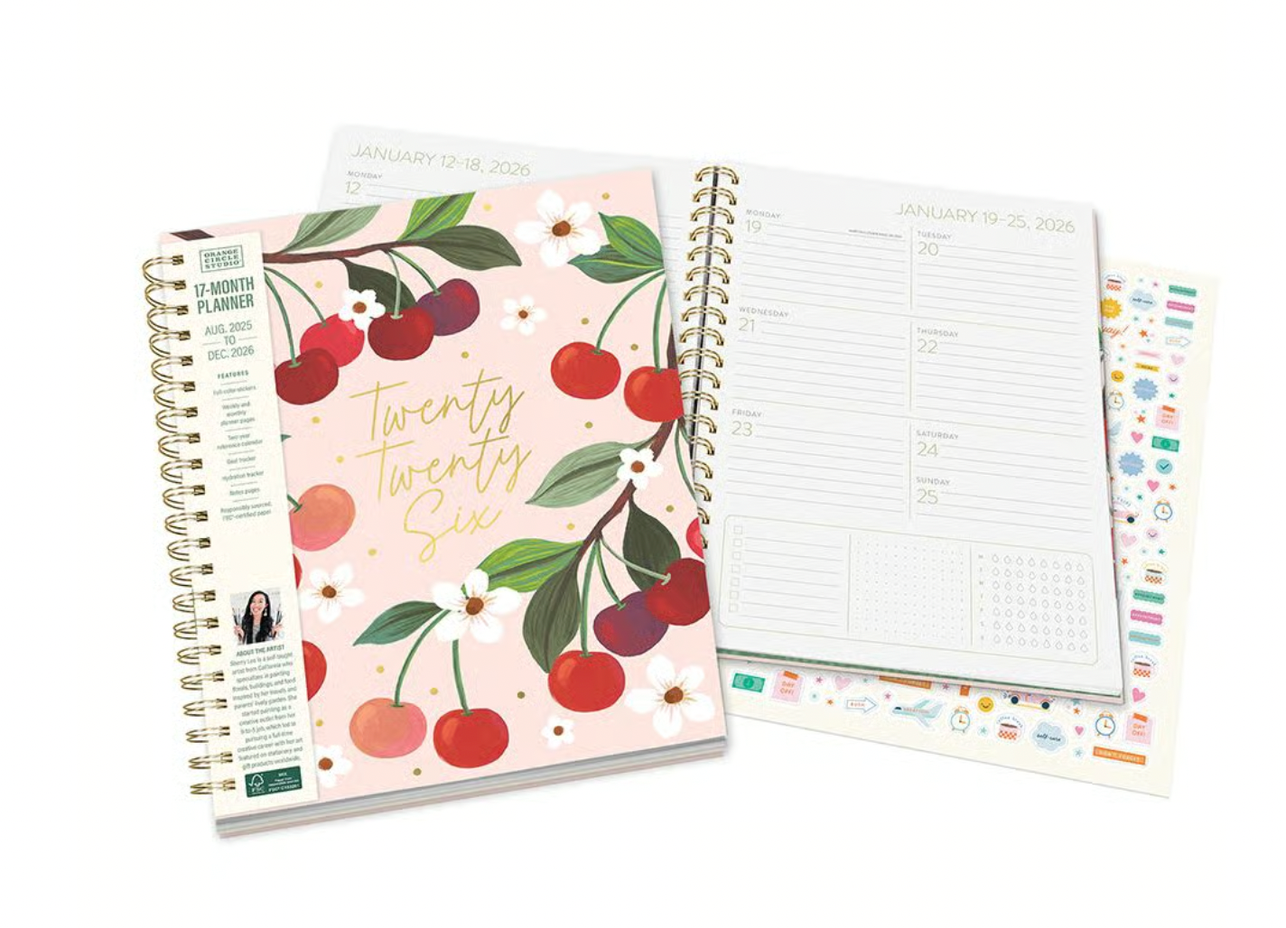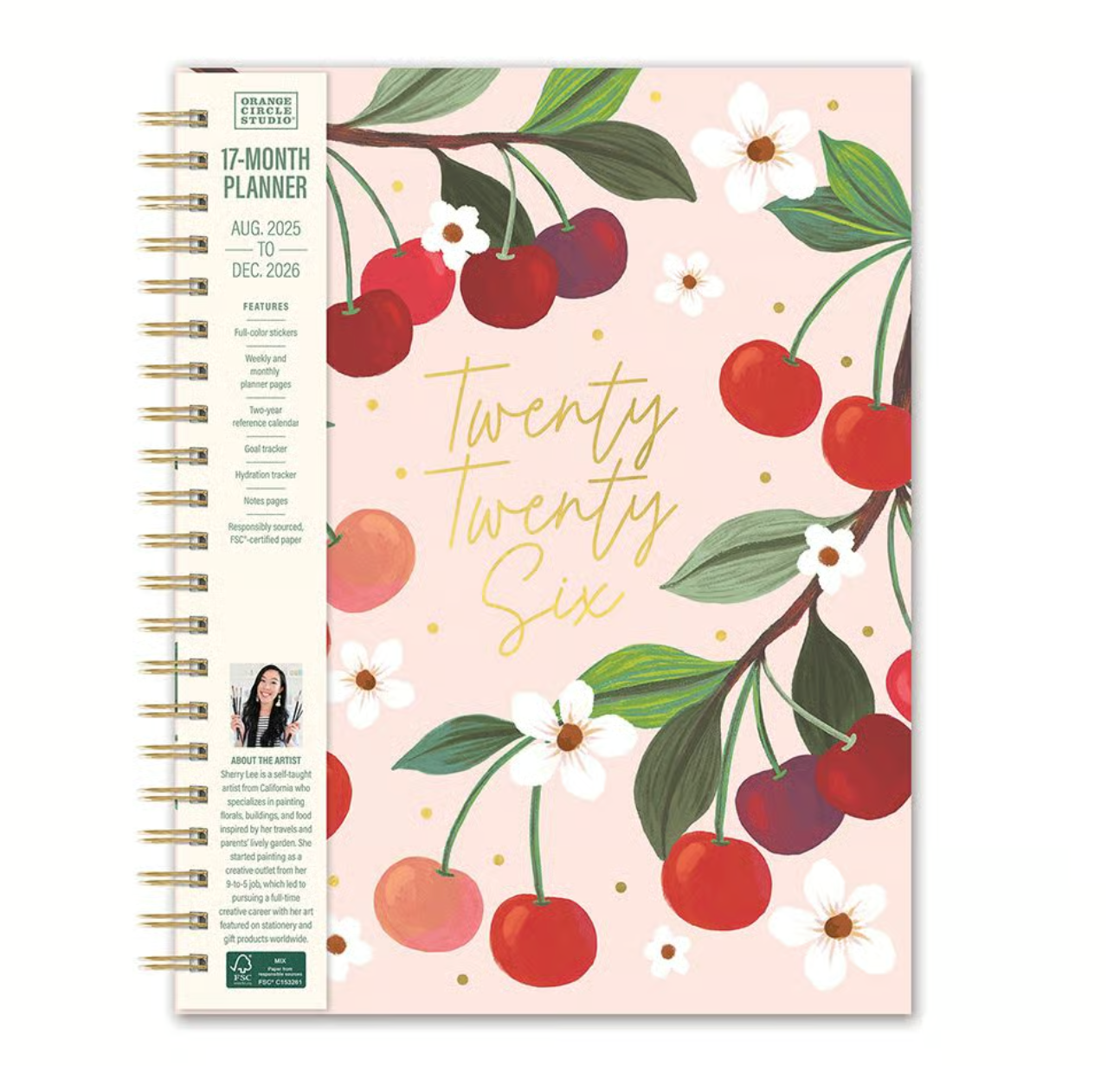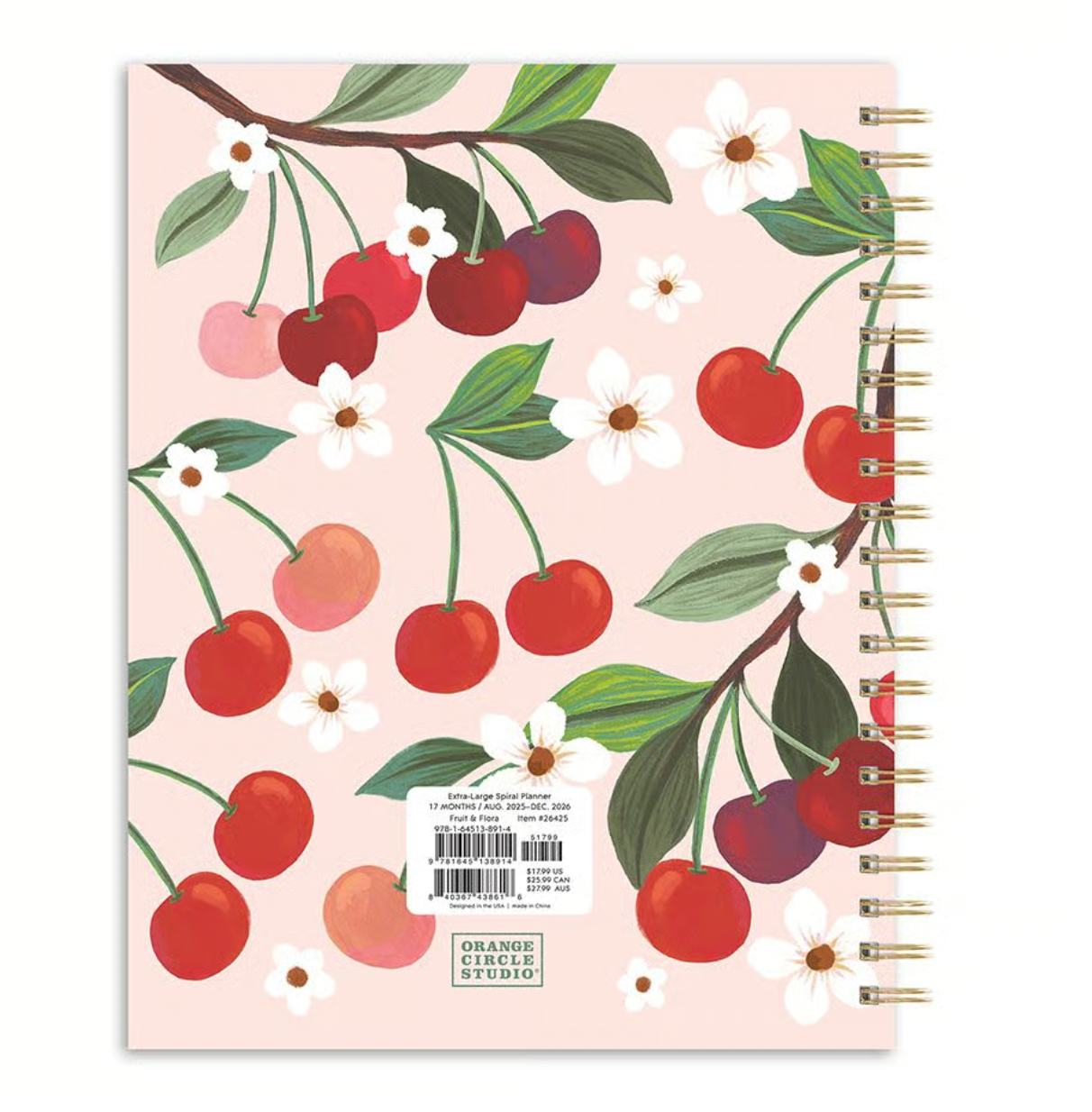 La agenda Fruit and Flora 2026 de Orange Circle Studio combina estilo, funcionalidad y un diseño artístico que enamora. Adornada con vibrantes ilustraciones de cerezas y flores, esta agenda no solo es una herramienta de organización, sino también una verdadera pieza de arte. Su encuadernación de espiral metálica y cubierta dura garantizan durabilidad, perfecta tanto para el hogar como para llevar contigo a donde vayas.