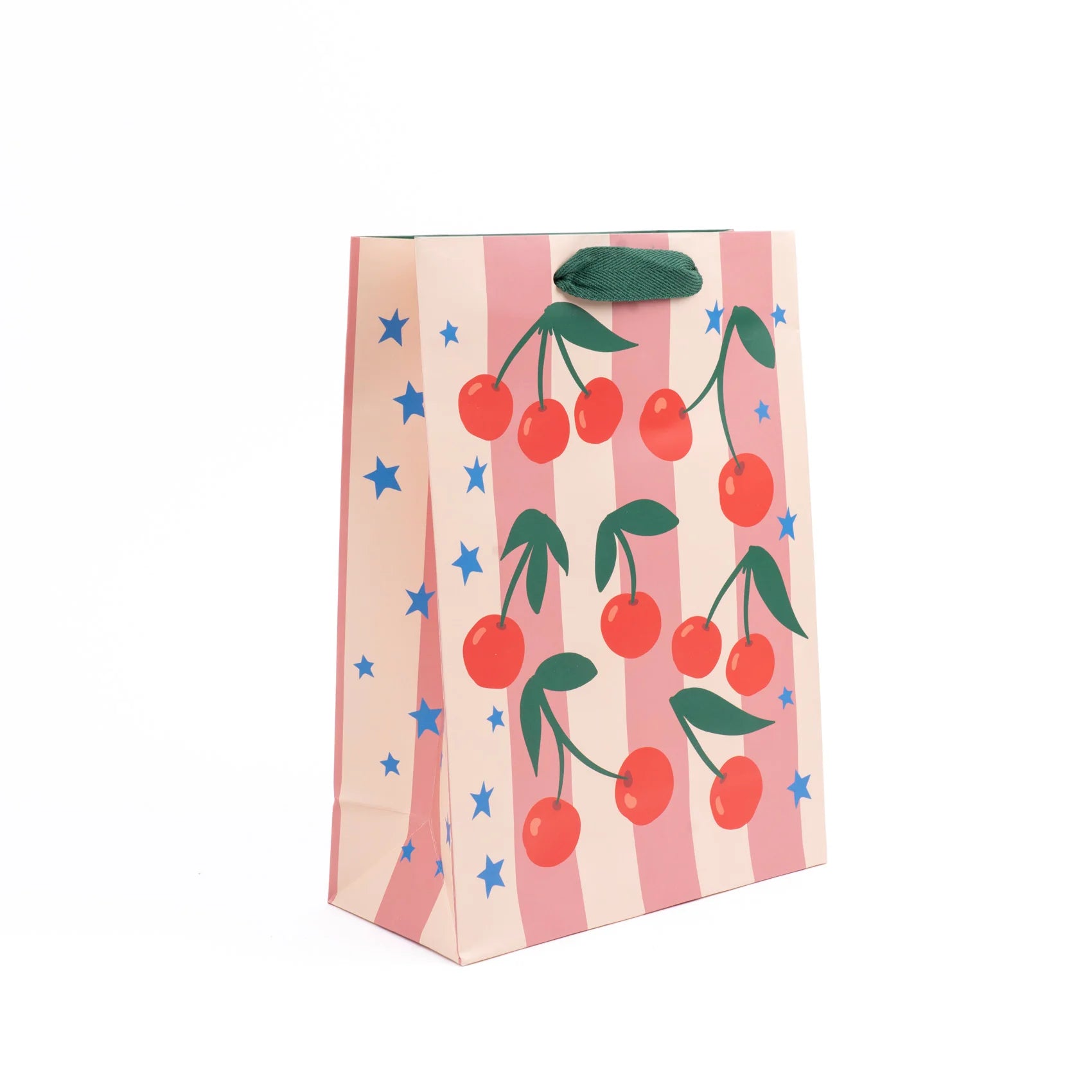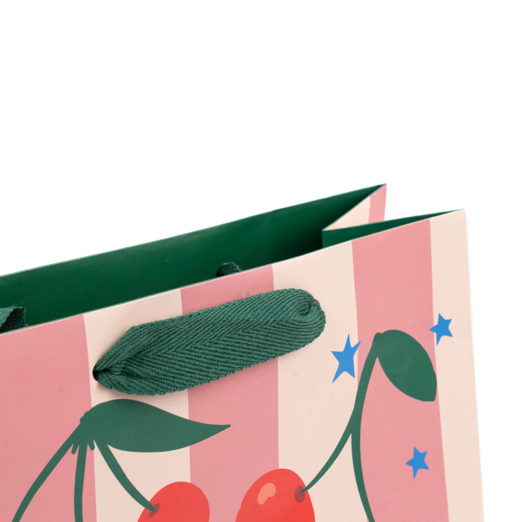 Esta Bolsa Regalo Mediana Cerezas combina estilo y practicidad para envolver tus regalos con un toque único y encantador. Su tamaño mediano es ideal para contener diversos obsequios, mientras que su diseño de cerezas aporta frescura y alegría a cualquier ocasión. Perfecta para sorprender con un detalle cuidado y lleno de personalidad.