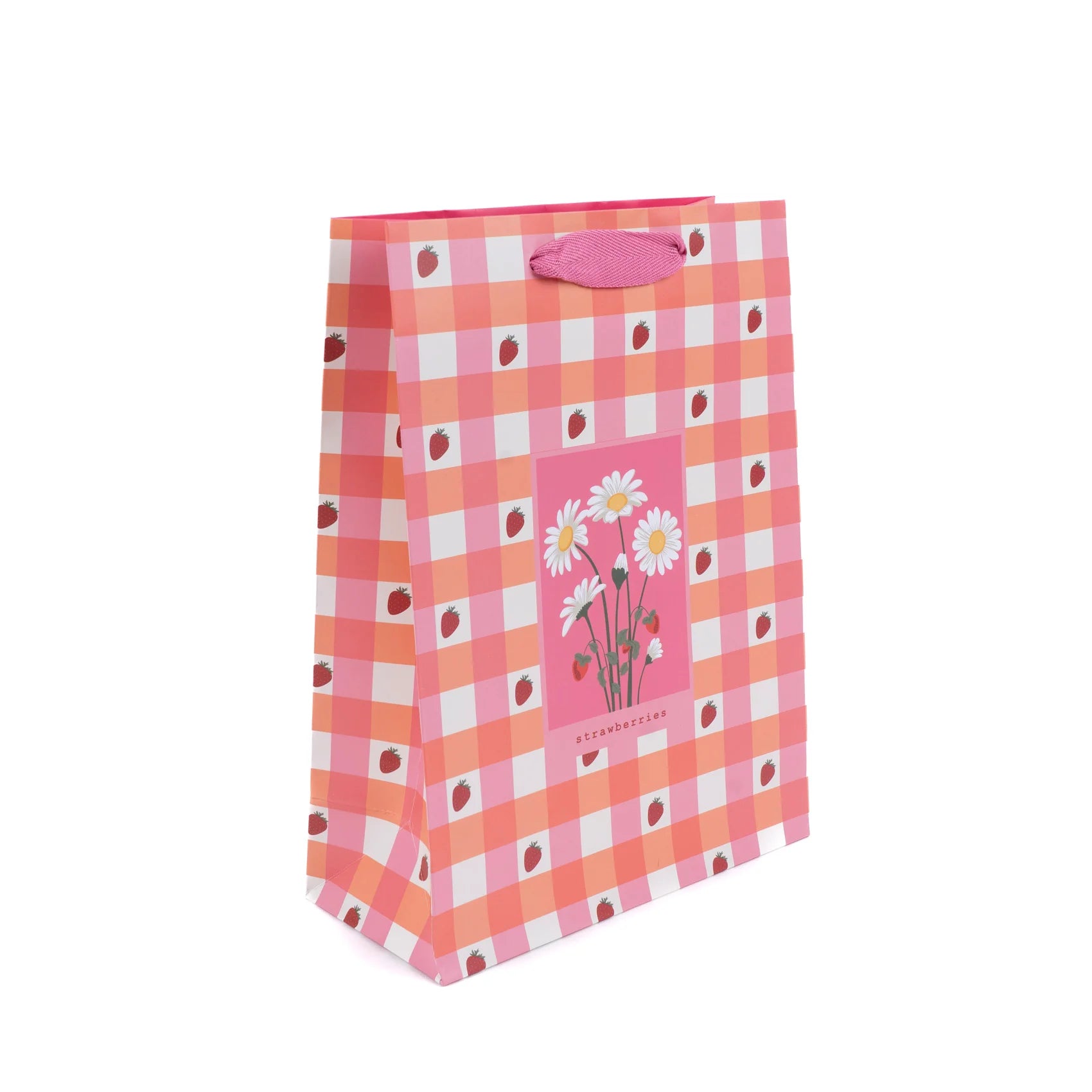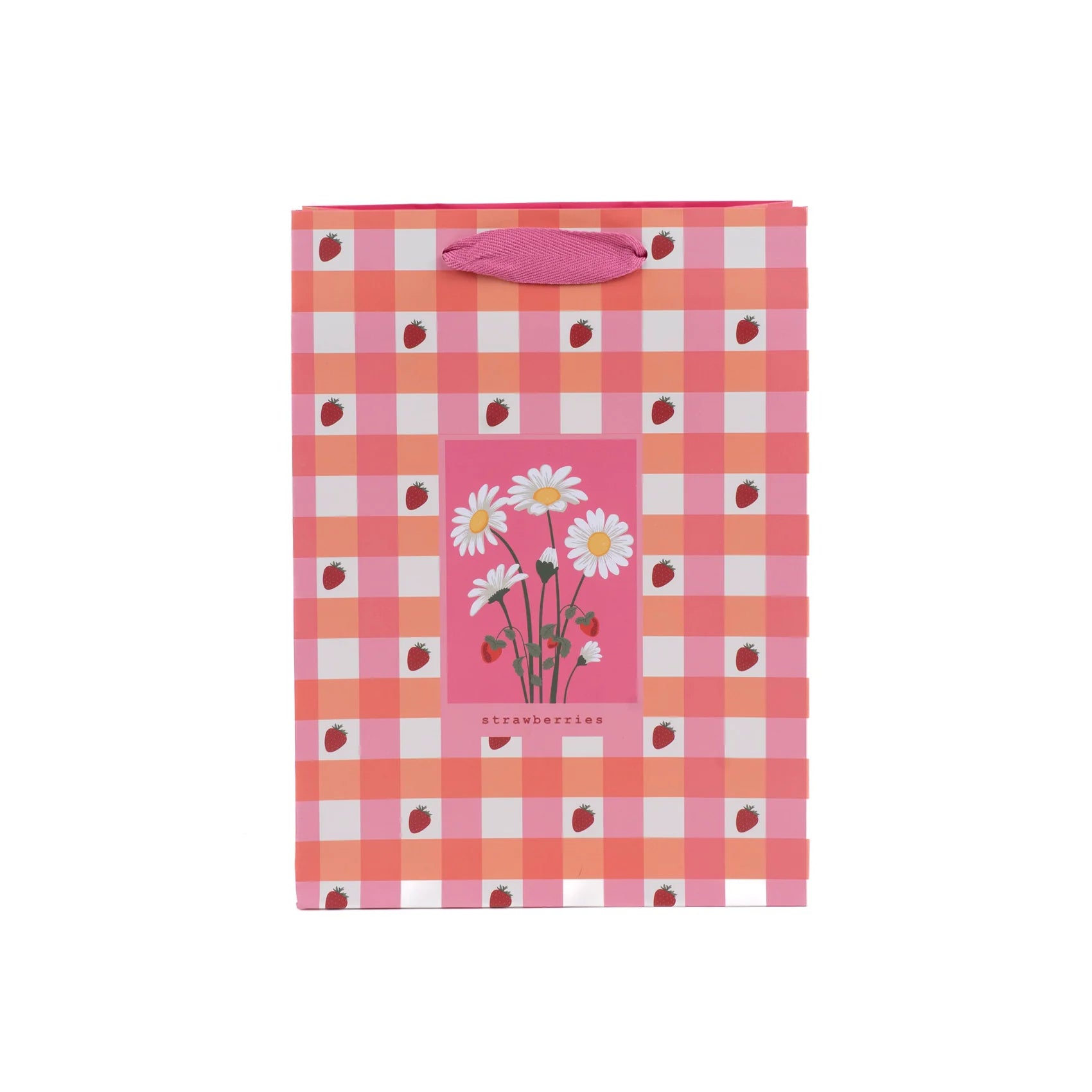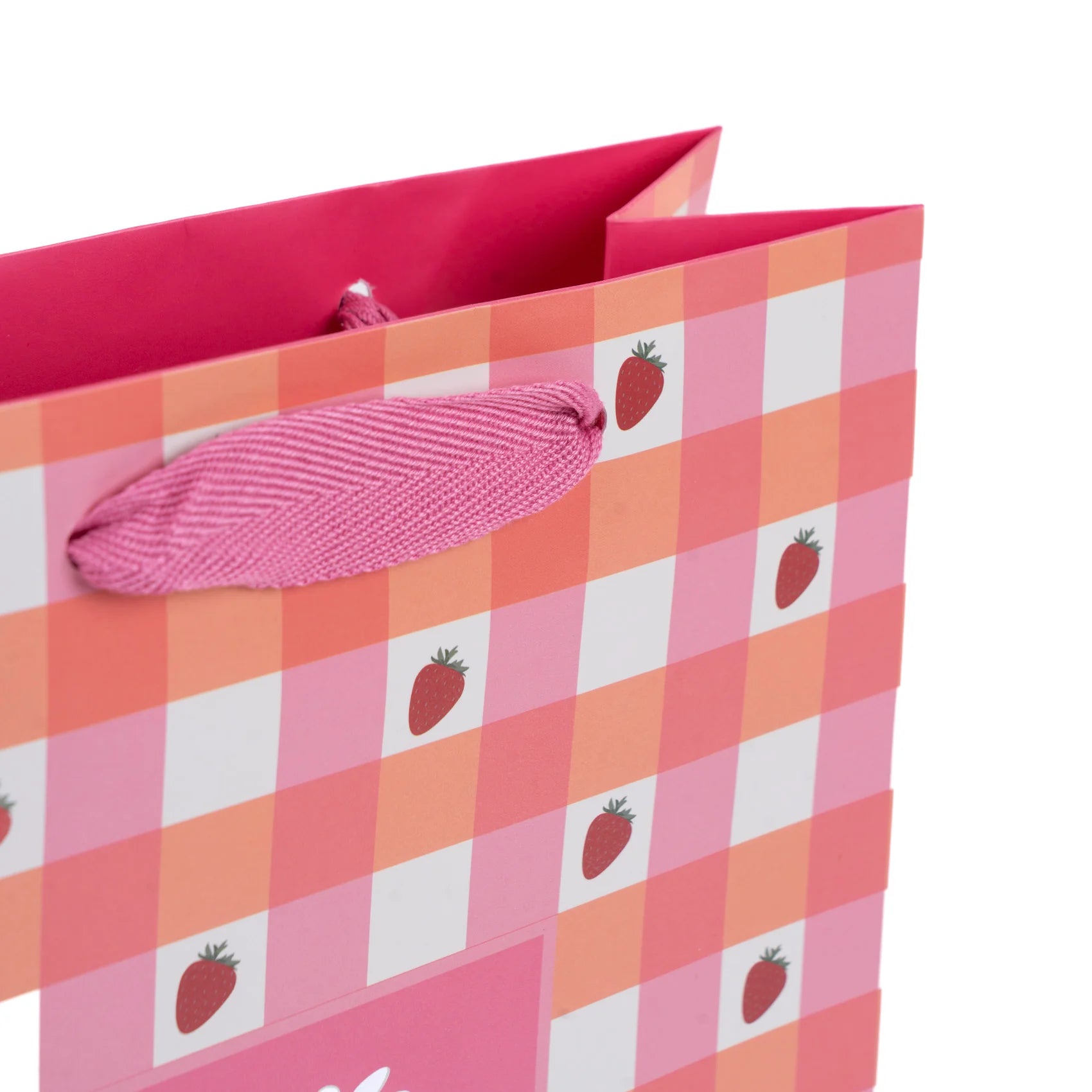 Bolsa Regalo Mediana - Flores y Frutillas Rosa