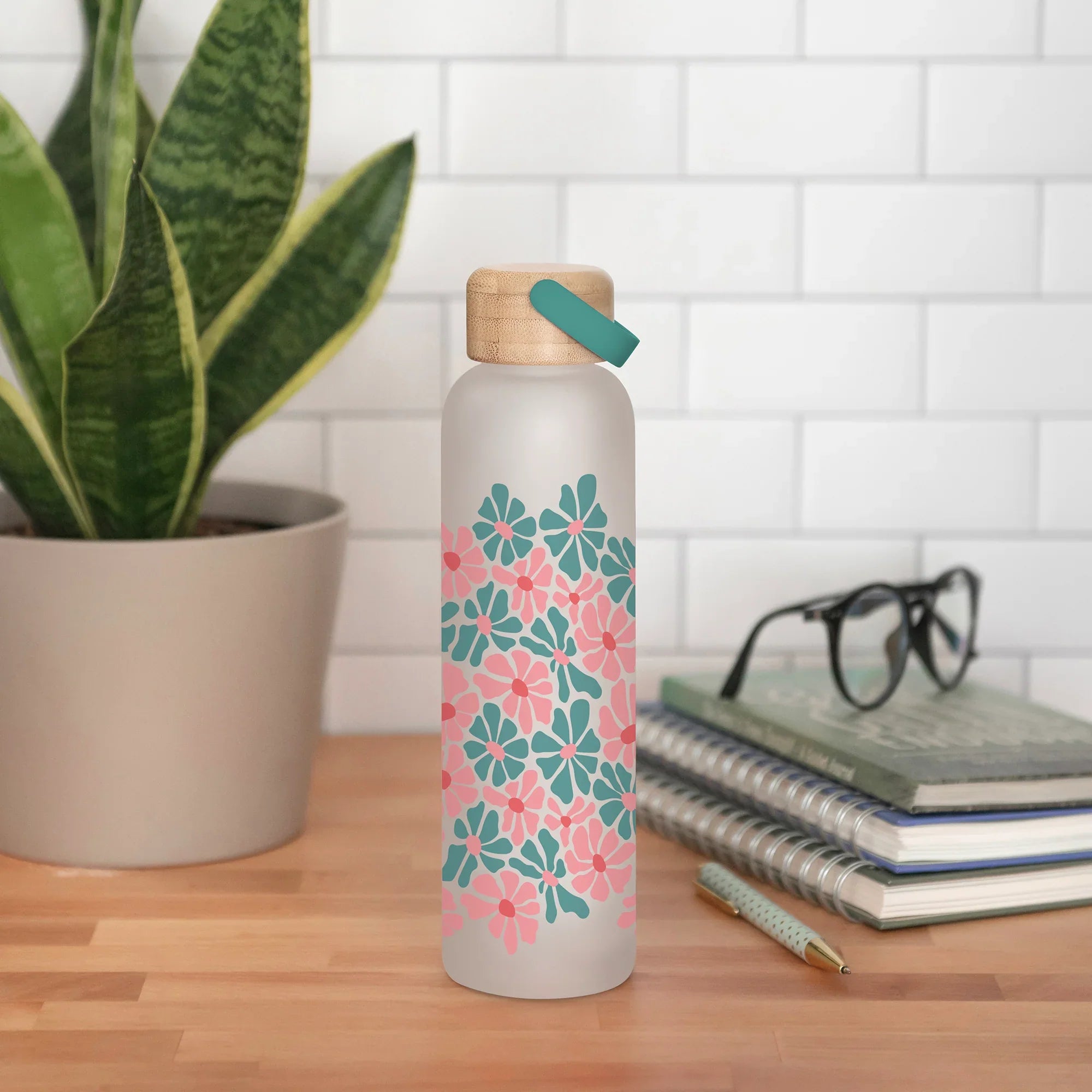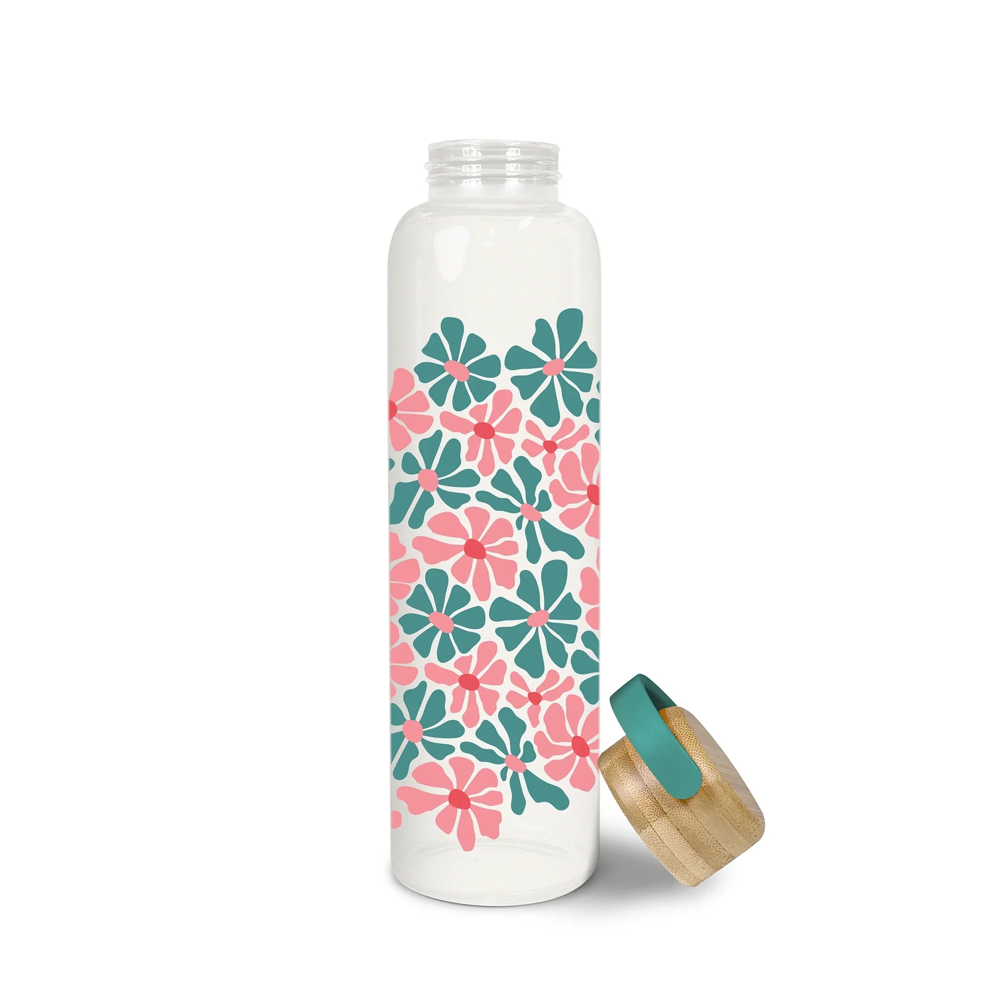 Esta linda botella de vidrio de Studio Oh! ofrecen una forma elegante y ecológica para hidratarse durante todo el día. Tiene una capacidad de 621 ml y están hechas de vidrio de borosilicato resistente a los golpes recubierto con silicona suave al tacto, lo que las hace suaves, duraderas, antideslizantes y antiderrames. La tapa de bambú natural proporciona un sello confiable y cuenta con un asa de colore combinada para facilitar su transporte.