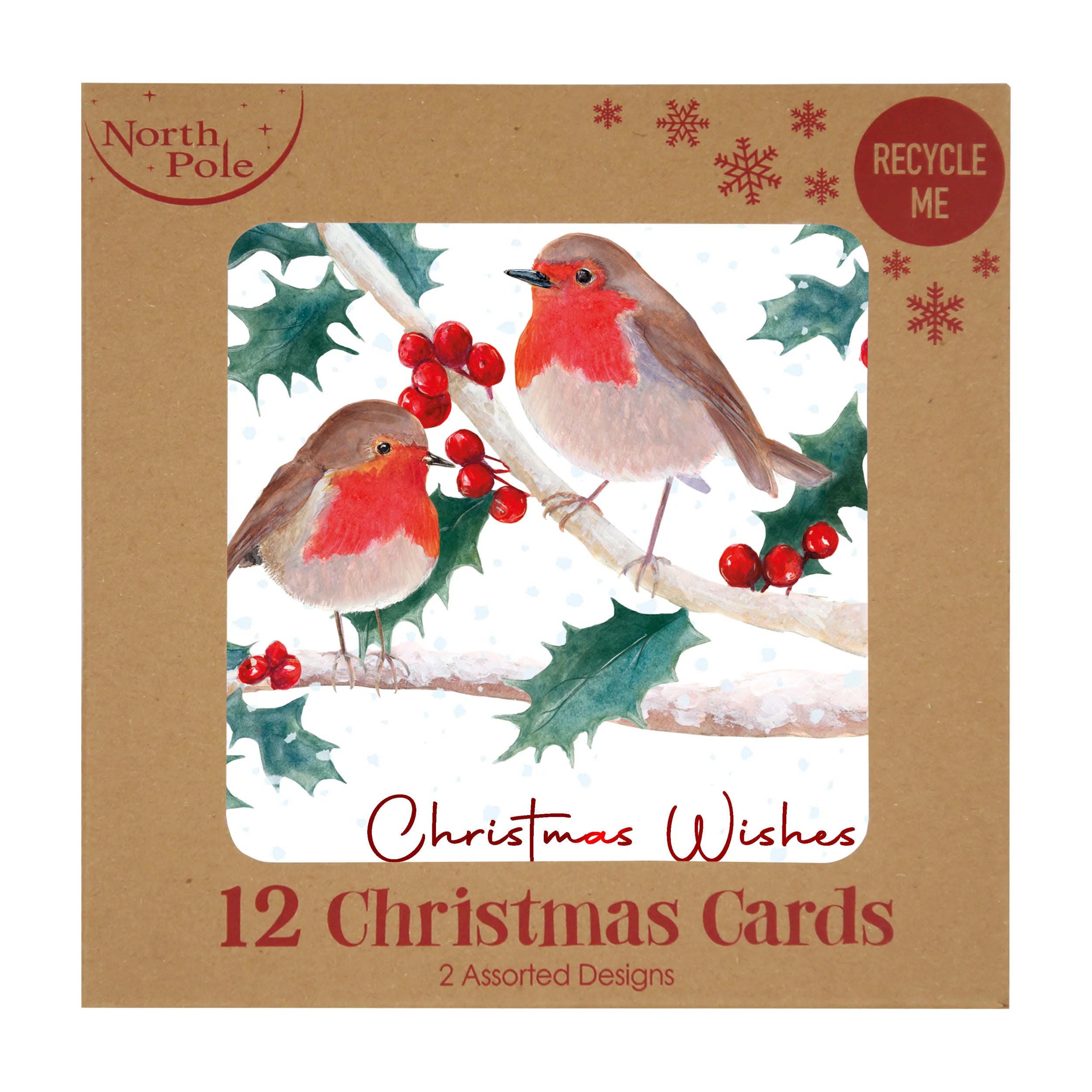 Caja 12 Tarjetas con Sobre Navidad - Pájaros