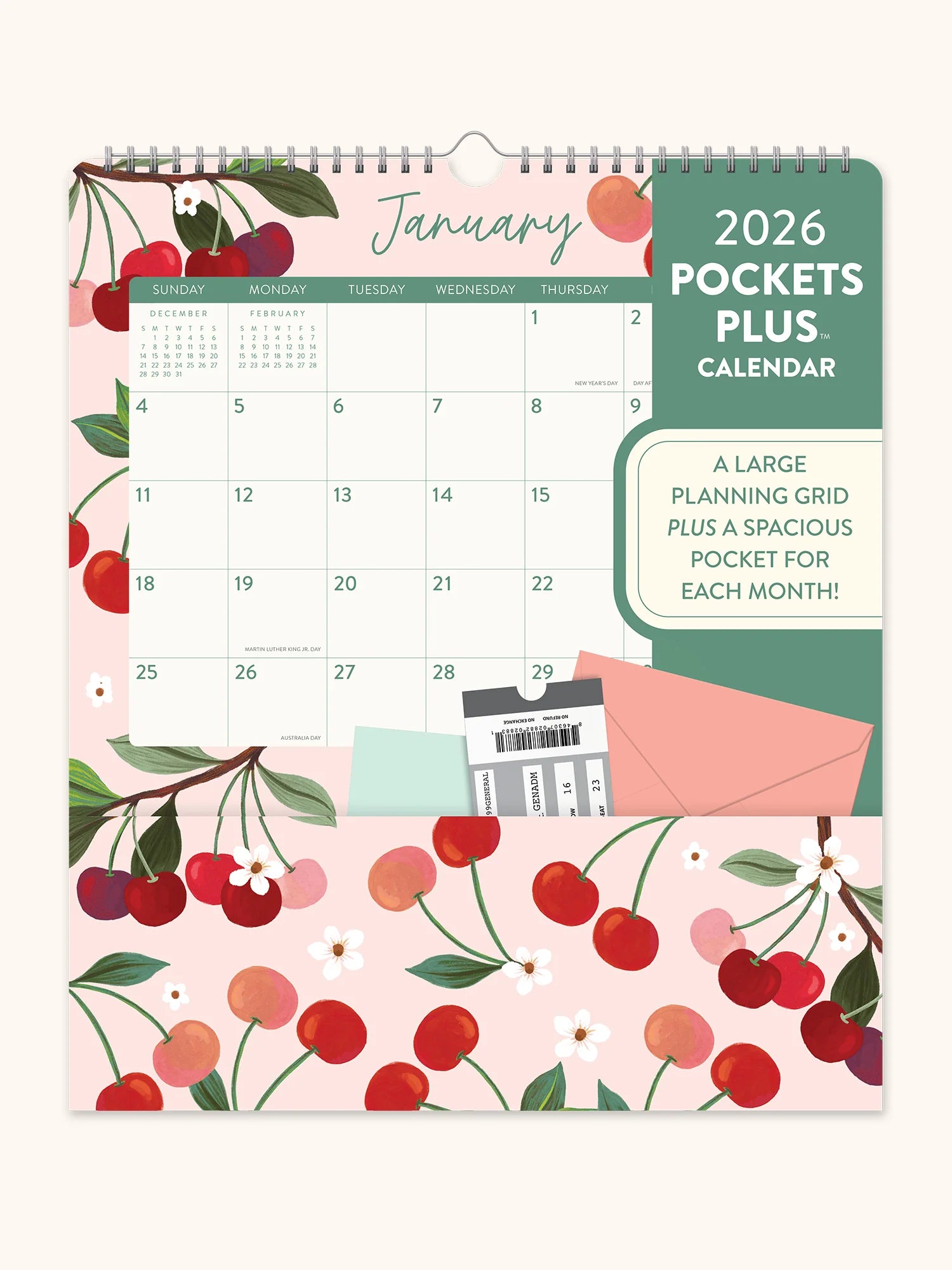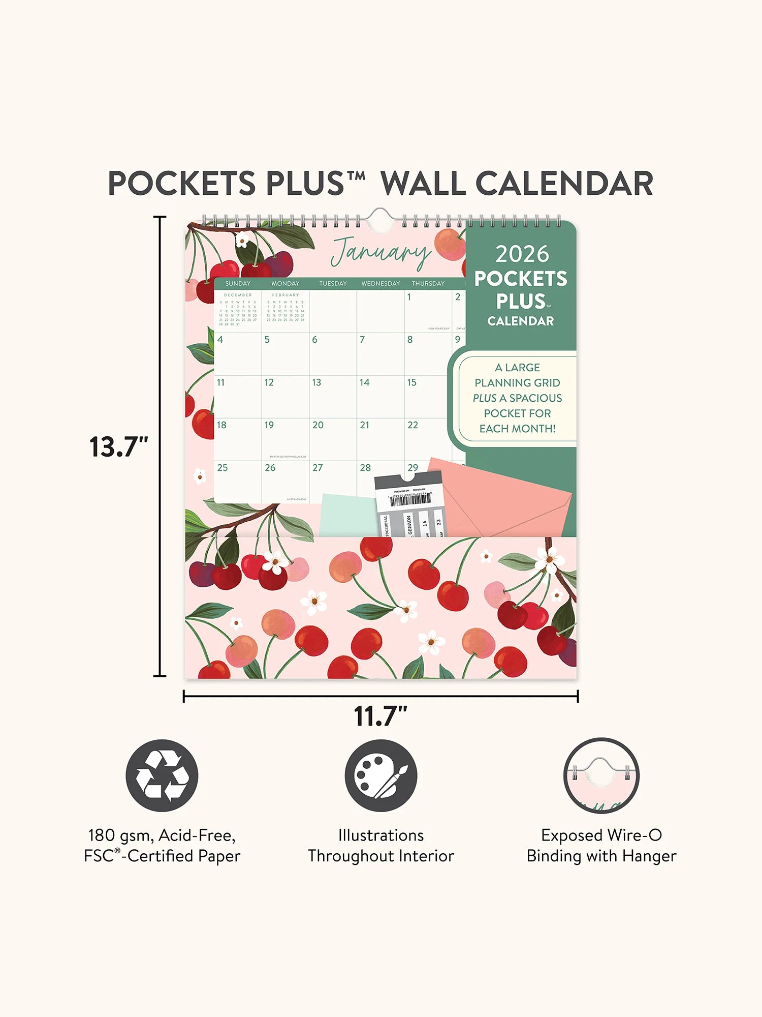 Guarda tus recordatorios, entradas o tarjetas especiales justo donde los necesitas con el Calendario 2026 Pockets Plus de Orange Circle Studio. Cada mes incluye un amplio bolsillo para almacenar recibos, sobres o pequeños documentos, acompañado de encantadoras ilustraciones que alegrarán tu espacio durante todo el año.