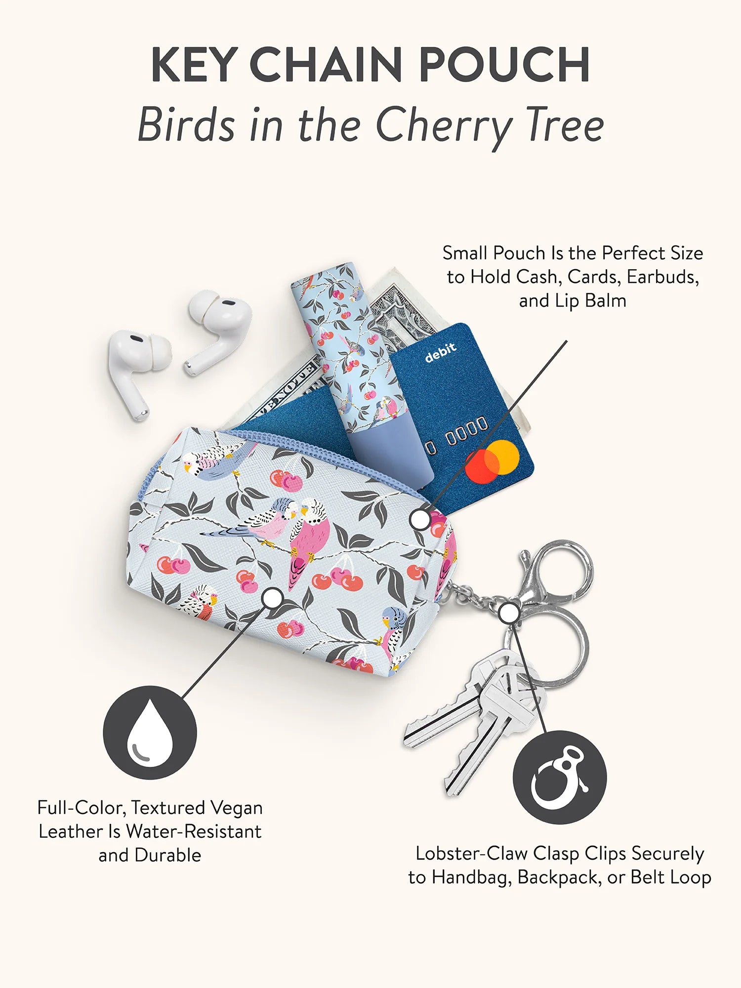 Este práctico mini estuche de Studio Oh! proporciona una forma segura y elegante de llevar artículos esenciales junto a tus llaves. El material con textura de lona resistente al agua e interiores forrados hace que sea duradero y fácil de limpiar. No te dejes engañar por su tamaño, ya que es lo suficientemente espaciosa para una variedad de artículos personales, como identificaciones, tarjetas, bálsamo labial, goma de mascar, dinero en efectivo, monedas, audífonos, y más. El cierre incluye un llavero y un broche de pinza, por lo que es fácil de sujetar a un bolso, mochila o cinturón.