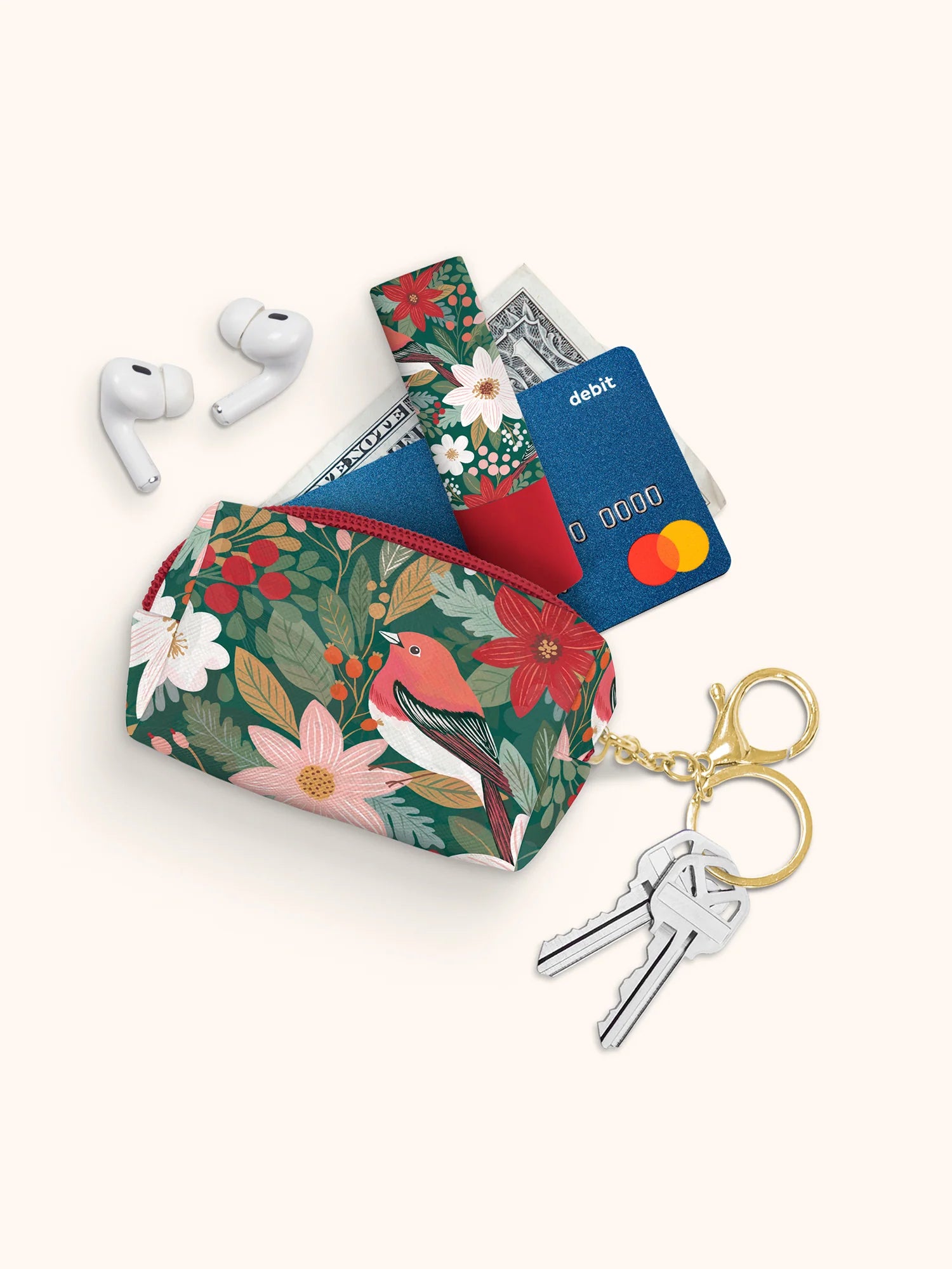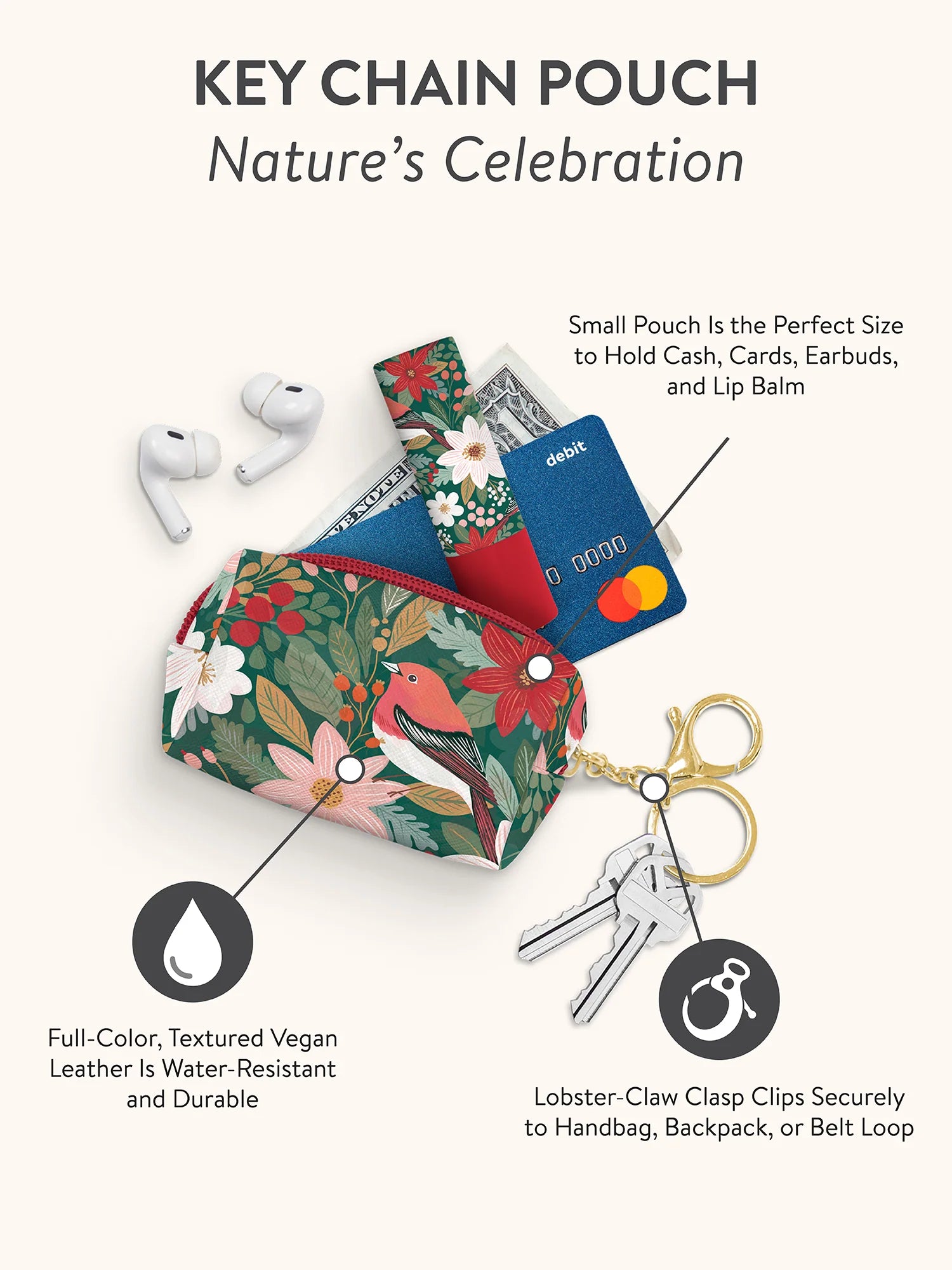 Este práctico mini estuche de Studio Oh! proporciona una forma segura y elegante de llevar artículos esenciales junto a tus llaves. El material con textura de lona resistente al agua e interiores forrados hace que sea duradero y fácil de limpiar. No te dejes engañar por su tamaño, ya que es lo suficientemente espaciosa para una variedad de artículos personales, como identificaciones, tarjetas, bálsamo labial, goma de mascar, dinero en efectivo, monedas, audífonos, y más. El cierre incluye un llavero y un broche de pinza, por lo que es fácil de sujetar a un bolso, mochila o cinturón.