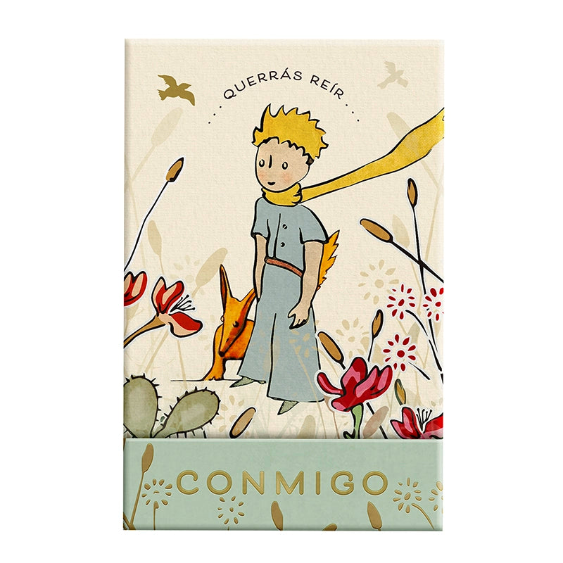 Encantadora libreta de tapa dura con diseño inspirado en El Principito. Su portada con detalles en folia le da un toque elegante y distintivo.