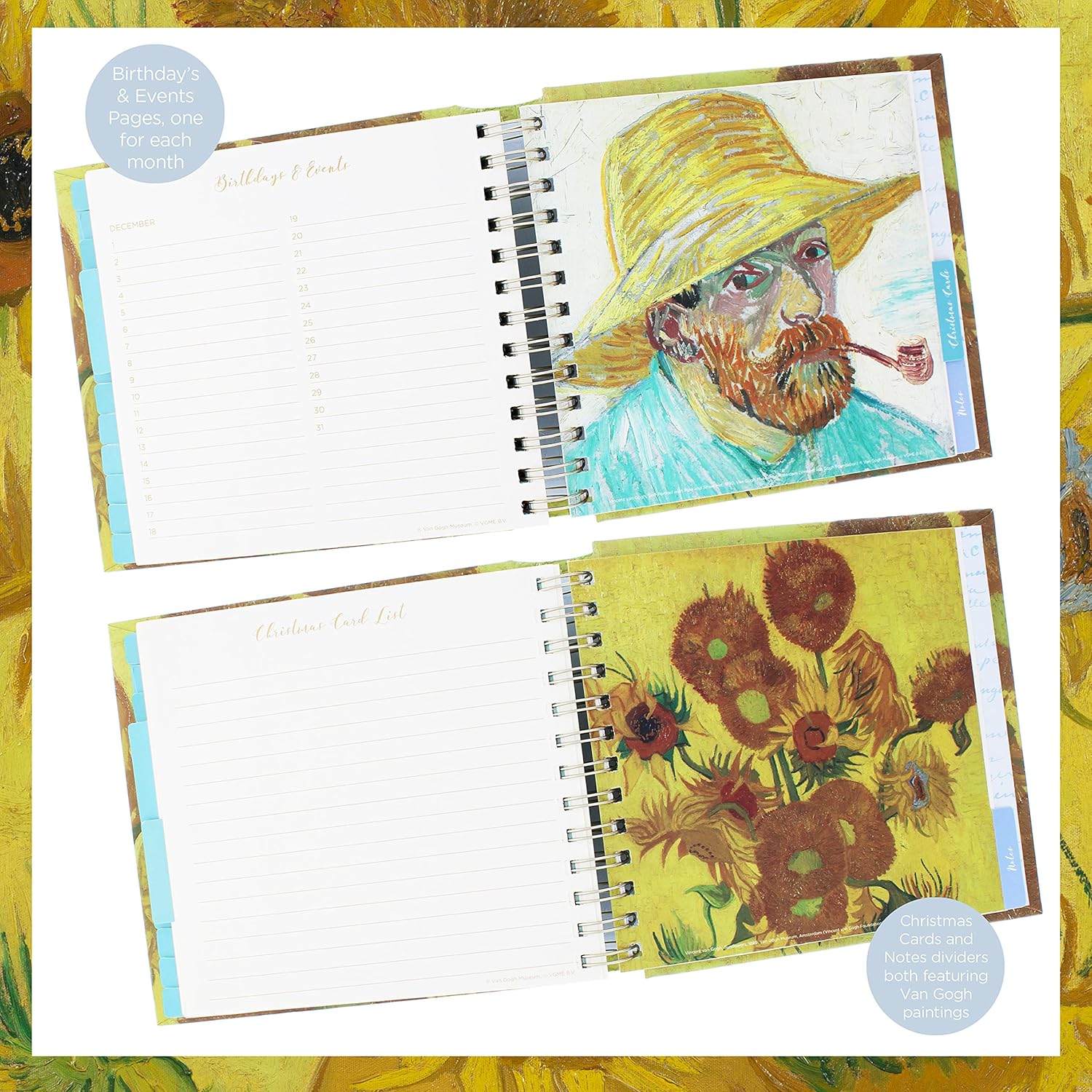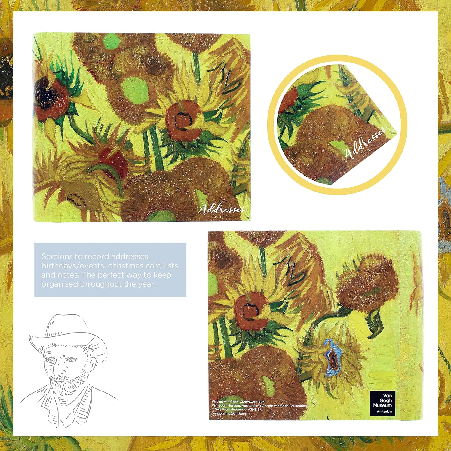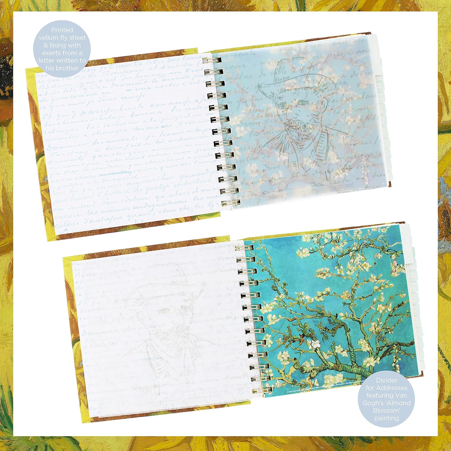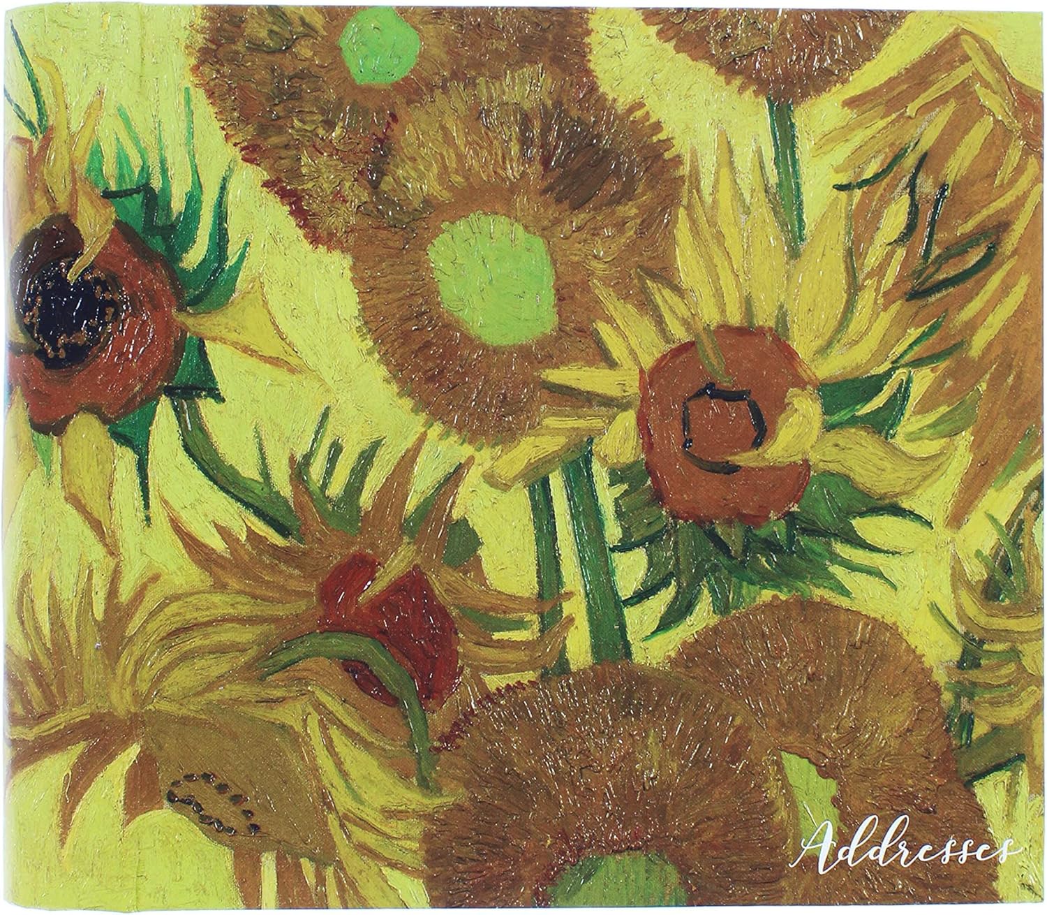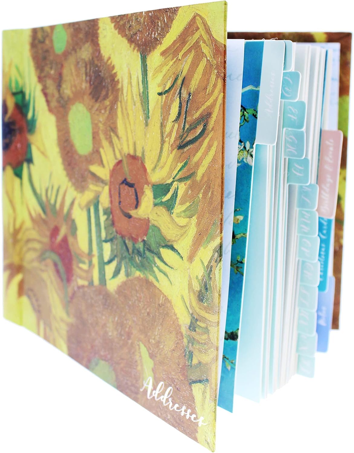 Una libreta elegante y práctica con el diseño de los icónicos girasoles de Van Gogh. Incluye índice alfabético y secciones pensadas para registrar direcciones, cumpleaños, eventos, listas de tarjetas de Navidad y notas.