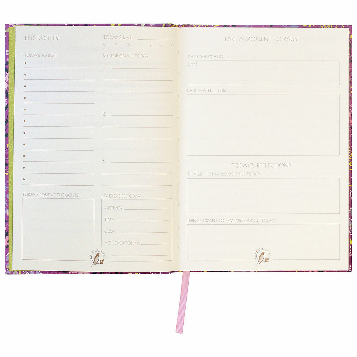 ¡Esta magnífica libreta guiada de mindfulness de Sara Miller es perfecto para realizar un seguimiento de tu bienestar personal! ¡Adentro hay secciones especialmente creadas para asegurarse de que tu salud mental sea la prioridad número uno! Cada página se divide en una variedad de secciones. Cada día se divide en una página doble con espacio para que escribas la fecha del día y junto al texto "¡HAGAMOS ESTO!". Por un lado, la página está dividida en espacios para tu lista de tareas pendientes, objetivos principales diarios, un espacio para pensamientos positivos y un espacio para que realices un seguimiento de tu ejercicio diario. El otro lado se titula "TÓMATE UN MOMENTO PARA PAUSAR" y está dividido en un cuadro para tu afirmación diaria, uno para enumerar las cosas por las que estás agradecido y tus reflexiones diarias, que se ha dividido en cosas que te hicieron sonreír ese día y cosas quieres recordar ese día.