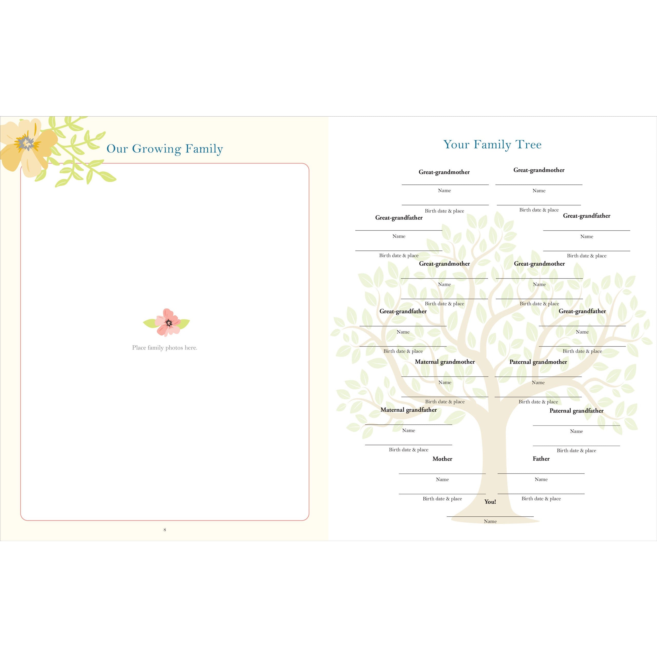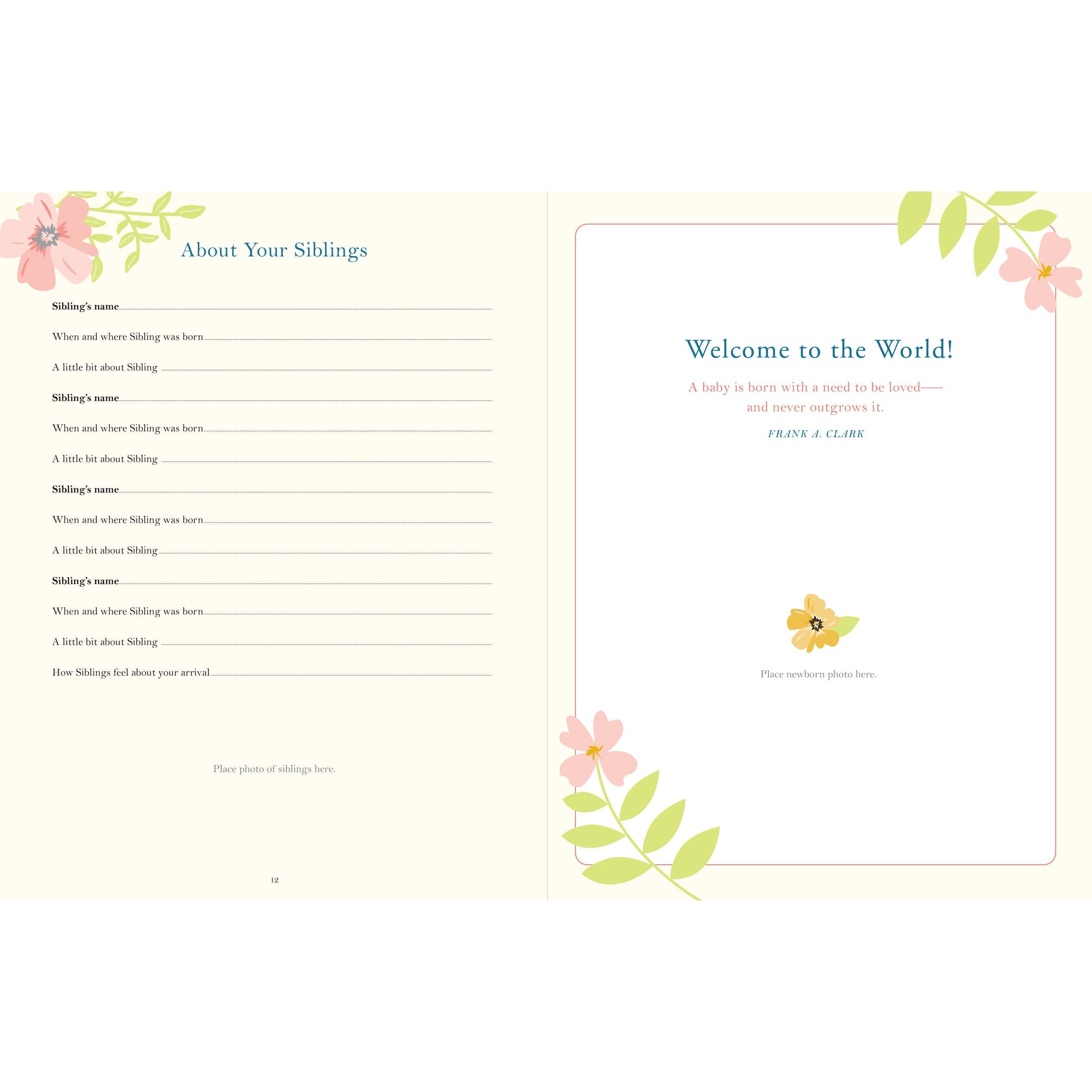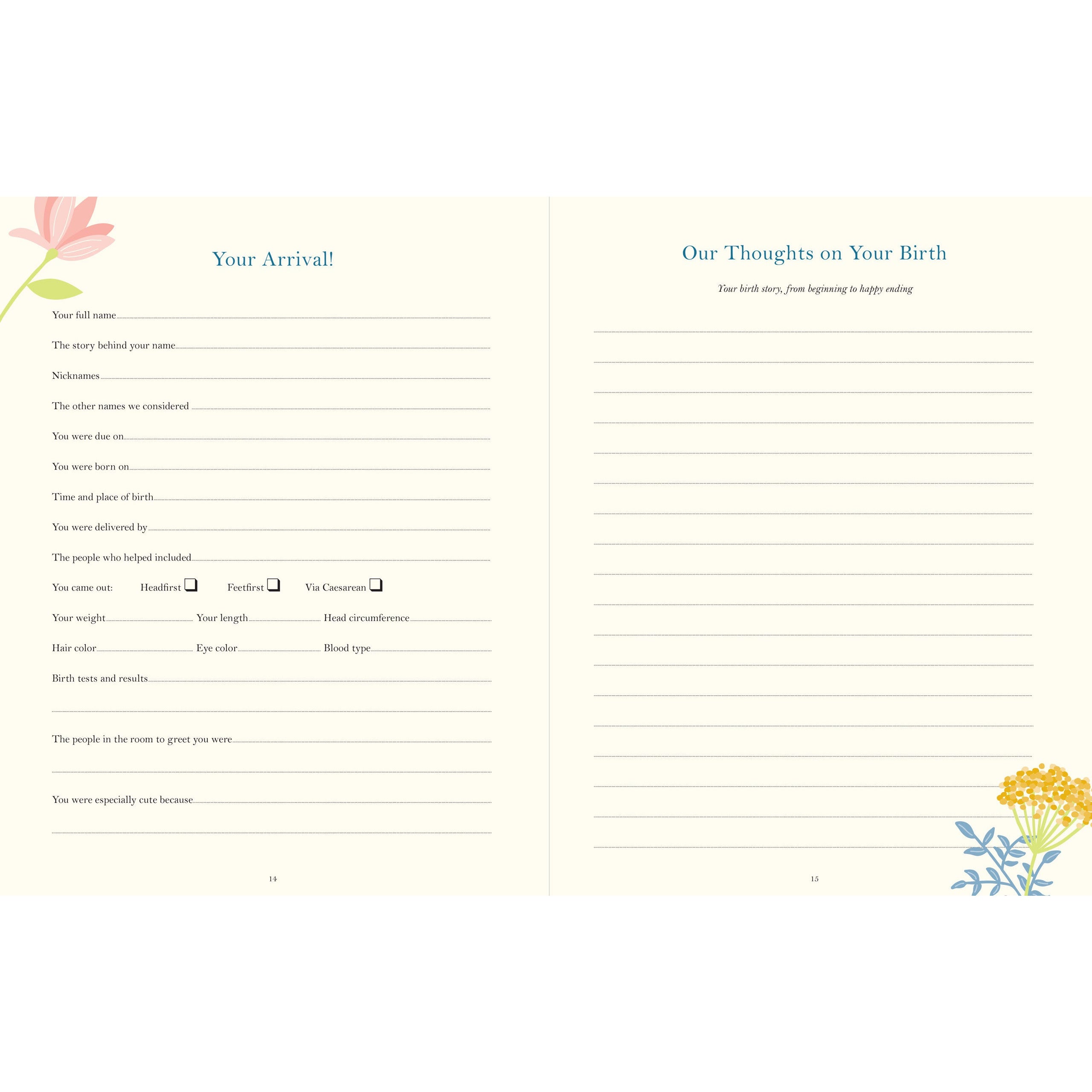 ¡Edición de lujo cubierta de tela! Con un hermoso diseño con una cubierta de tela con detalles en papel de aluminio dorado, muchas páginas guiadas para escribir y un amplio espacio para fotos, ¡este es el recuerdo perfecto para el bebé!