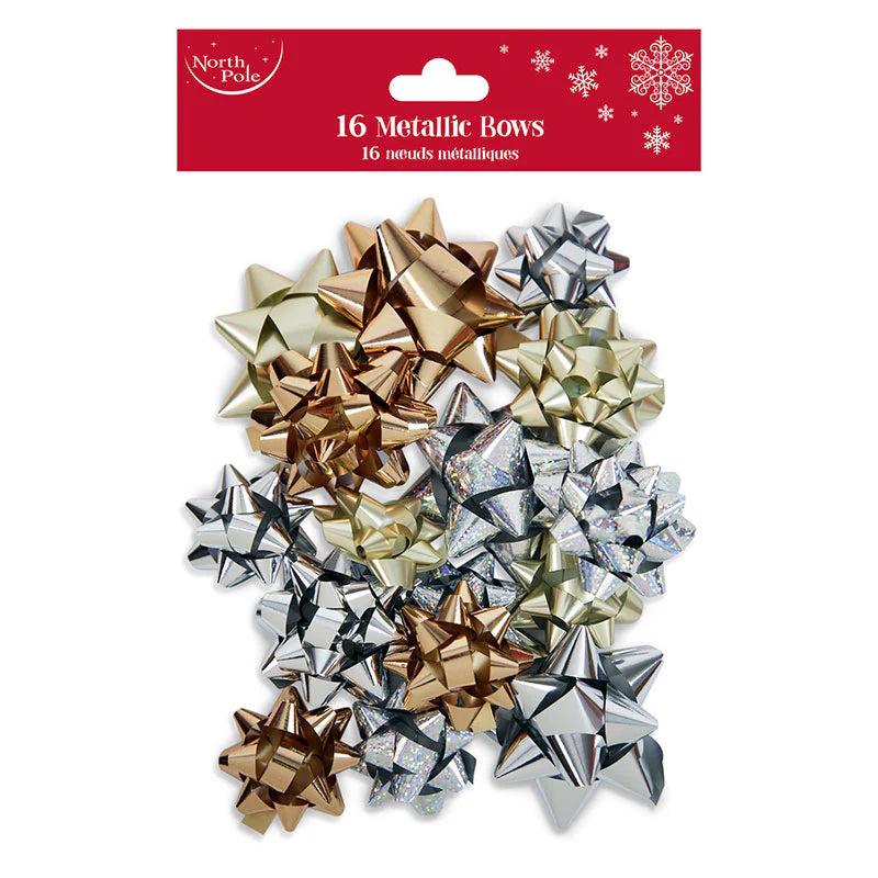 Dale el toque final perfecto a tus regalos con este set de moños metálicos. Con acabados brillantes en tonos dorado, plateado y cobre, aportan elegancia instantánea y un aire festivo a cualquier envoltorio. Ideales para complementar bolsas o cajas y hacer que cada obsequio destaque con estilo navideño.